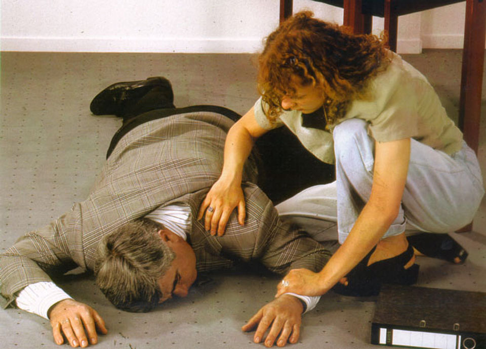 Bei Bewusstlosigkeit und vorhandener Atmung laut "Hilfe" rufen, um Umstehende auf die Notfallsituation aufmerksam zu machen